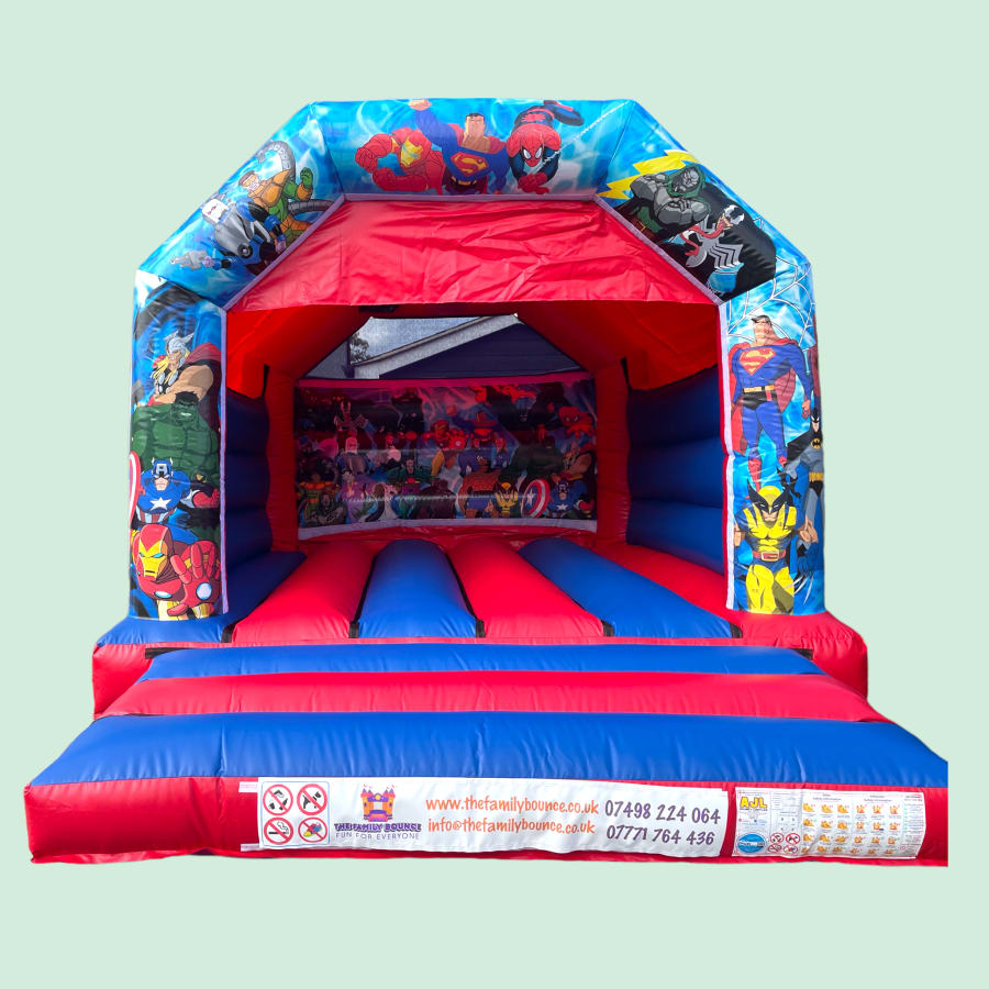 12ft By 15ft Blue and Red Superhero Bouncy Castle