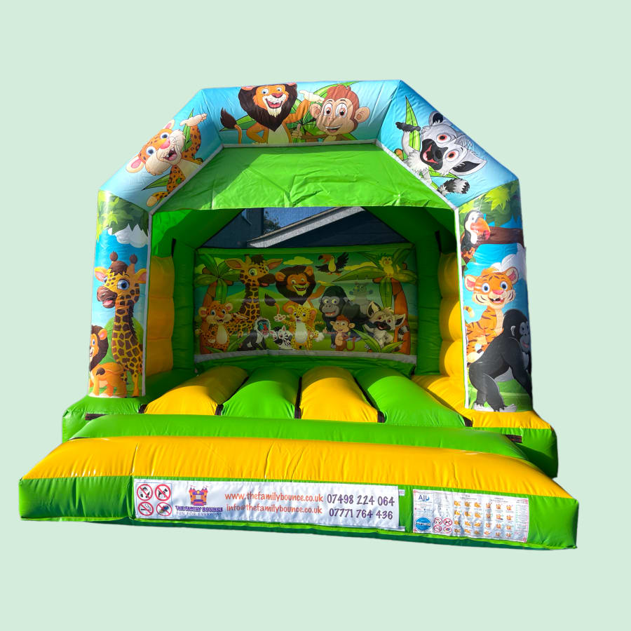 This amazing jungle themed bouncy castle has the king of the jungle and all its jungle friends, From lions, Gorilla and them every so cheeky monkeys and the birds in the sky, this bright and vibrant castle is a timeless classic with its cheeky characters suitable for young and old alike.