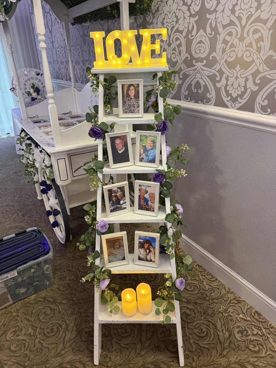 Our White Memory Ladder brings a warm, nostalgic touch to weddings, anniversaries, memorials, and family reunions. Hand-decorated by our team with photos, fresh or silk flowers, and soft accents, this elegant white ladder becomes a heartfelt backdrop that invites guests to pause, remember, and celebrate. We love helping local families create meaningful displays that fit the tone of the day. ❀️
