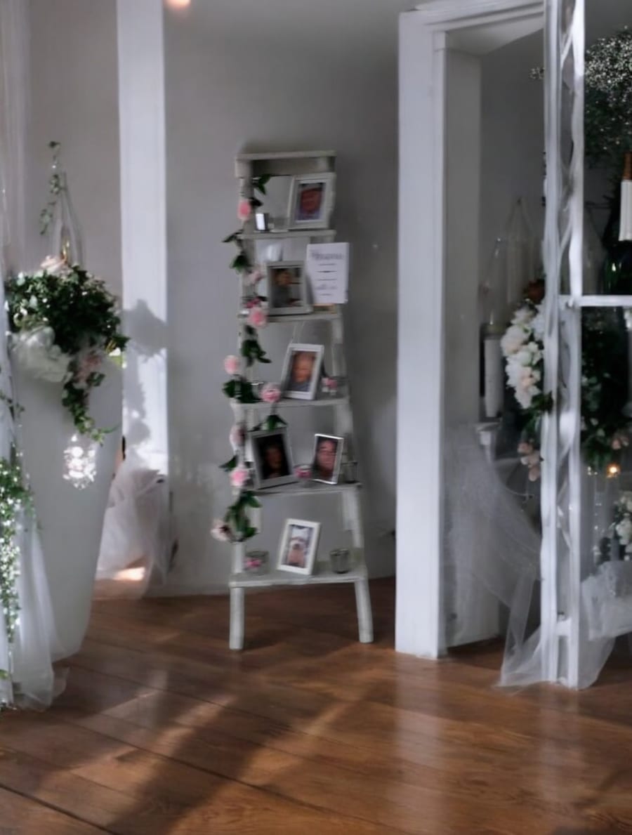 Tell us the number of photos and the theme you’d like. We’ll recommend a layout, add tastefully chosen florals and accents, and install the ladder at your venue. After the event, our team returns to carefully pack everything up. If you prefer to DIY, we offer guided pick-up with setup tips and secure clips to keep photos safe all day.
