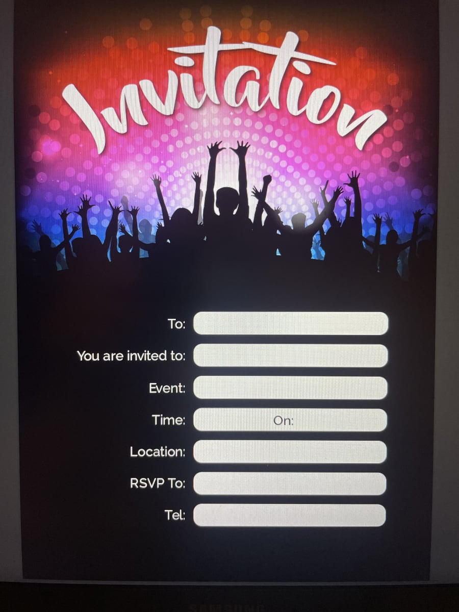 This lovely vibrant disco themed invite has been designed for you to be able to print off and use and send to all your lovely guests