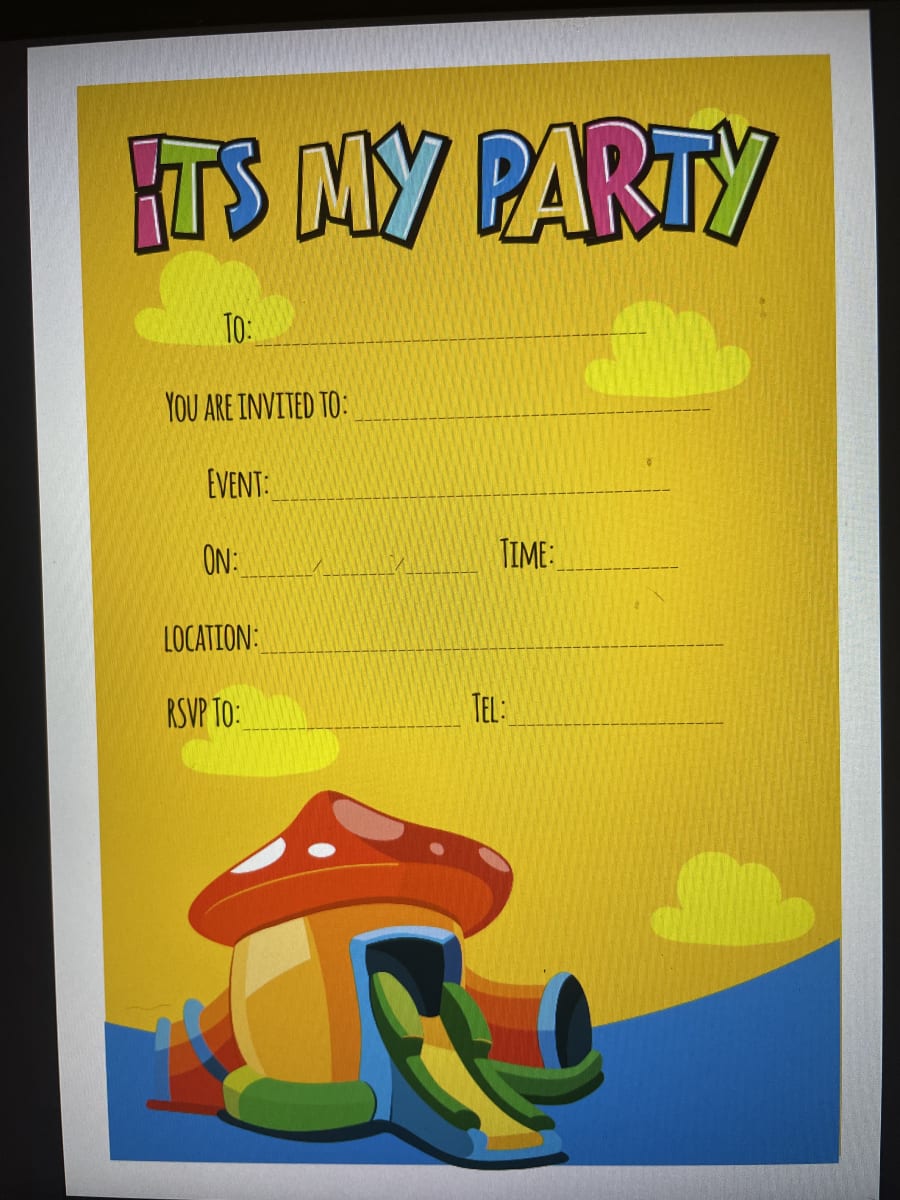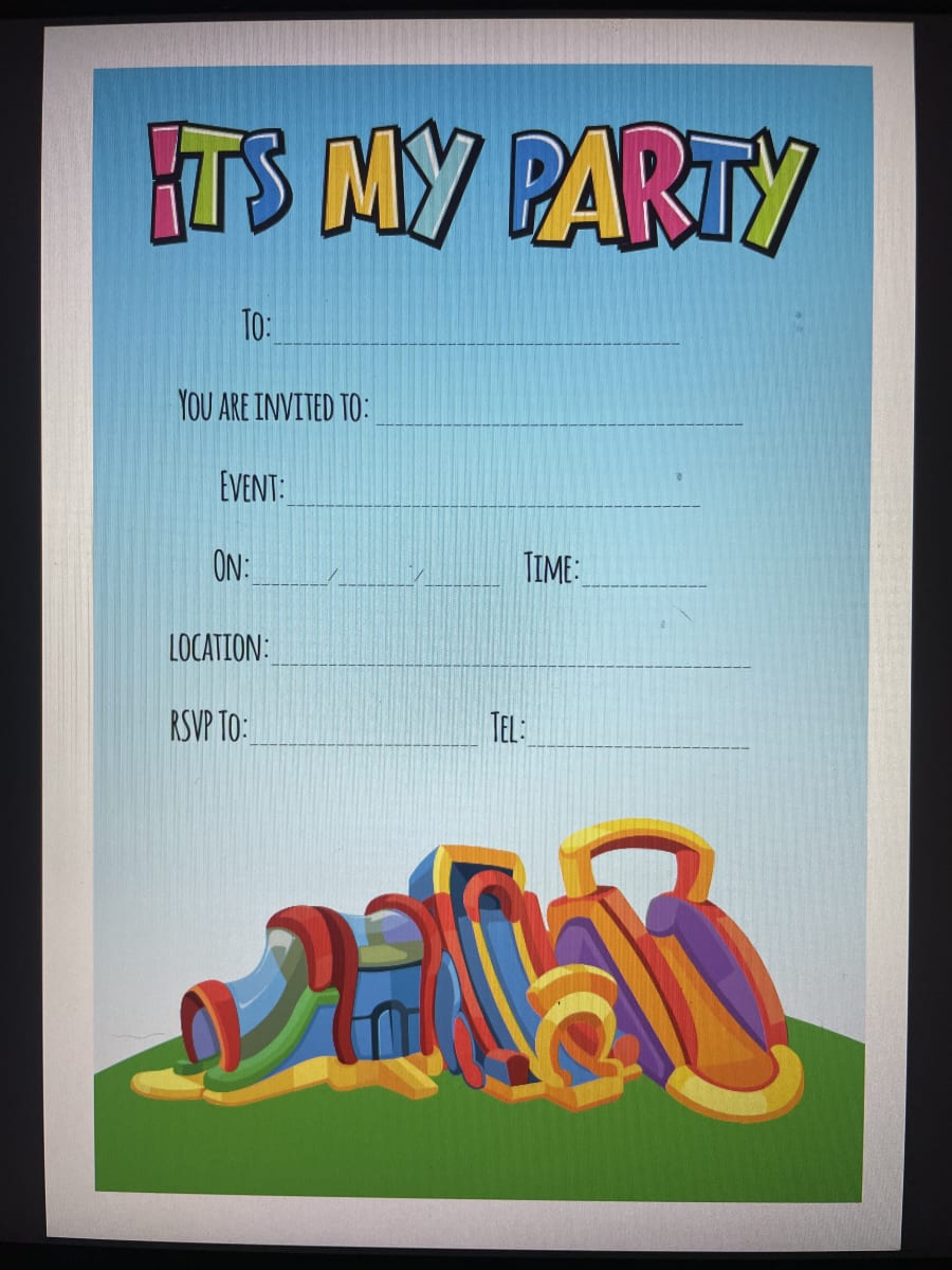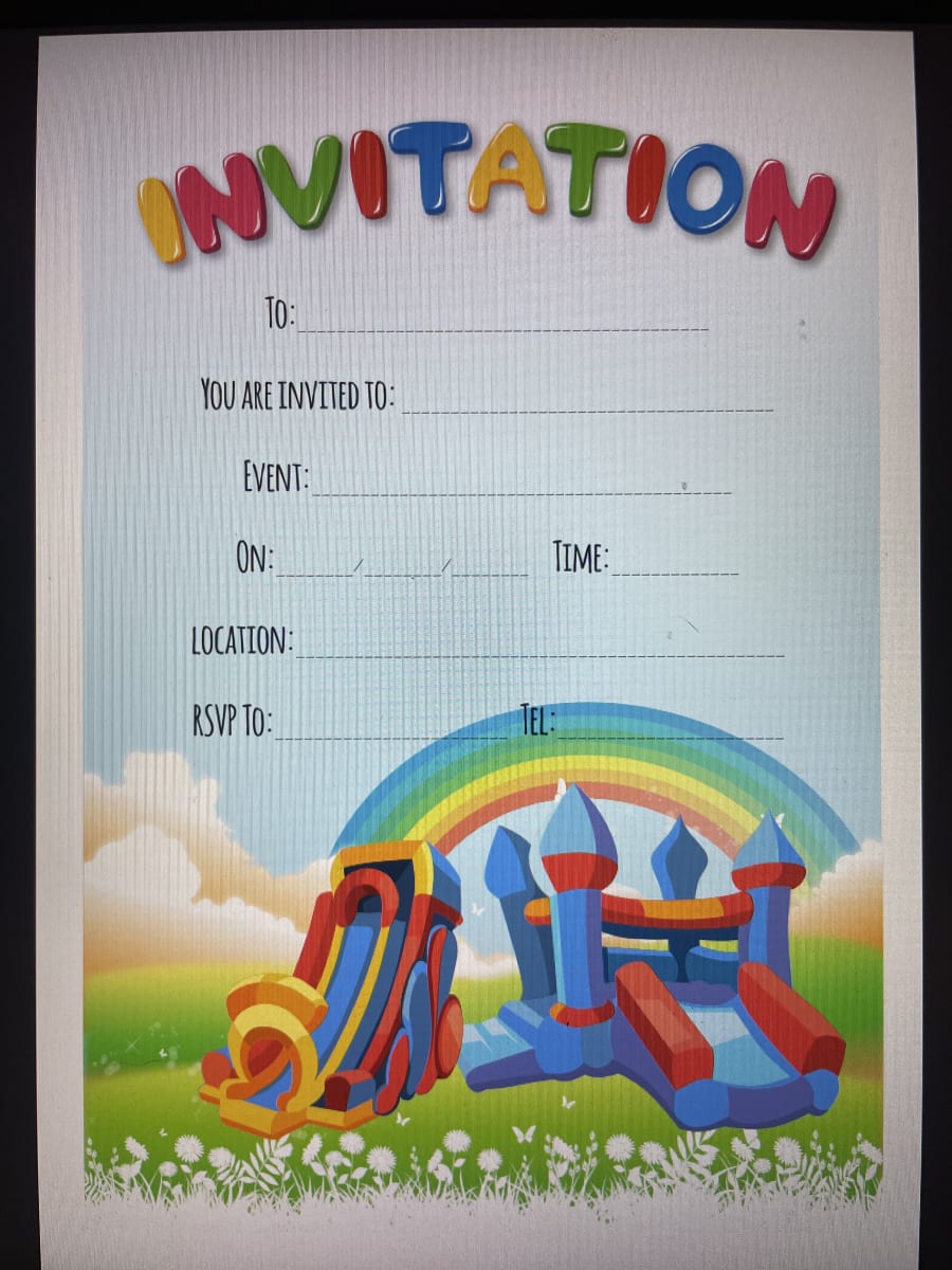 This lovely bright bouncy castle themed invites has been designed for you to be able to print off and use and send to all your lovely guests