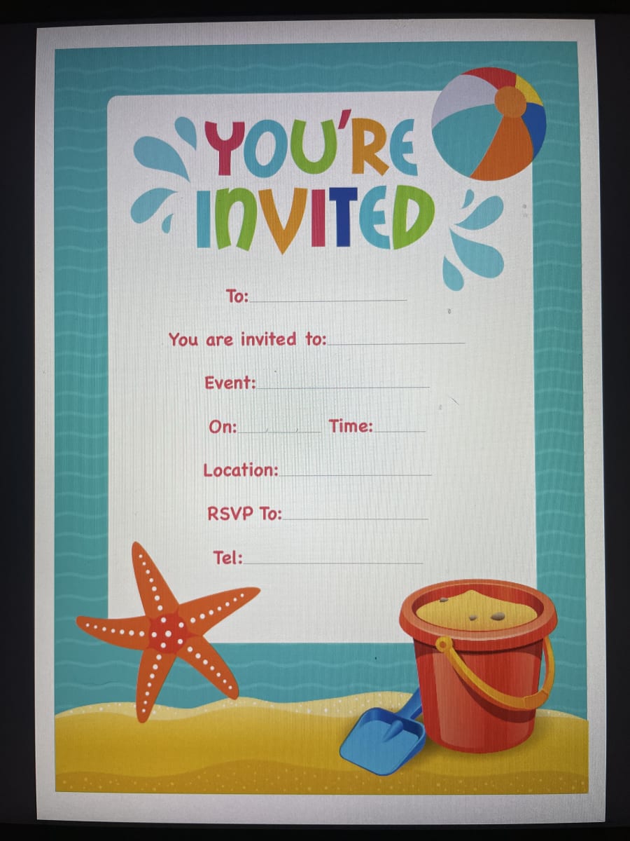 This lovely beach themed birthday invites have been designed for you to be able to print off and use and send to all your lovely guests.