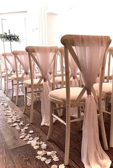 Chair sashes are a cost-effective way to refresh your venue without replacing furniture. Mix and match colours to echo table linens or floral arrangements, or use a single bold shade for a modern statement. For a classic look, try a neat bow; for something more relaxed, let a sash hang long and flowing. We’re happy to advise on colour pairings and tying techniques to suit your theme.